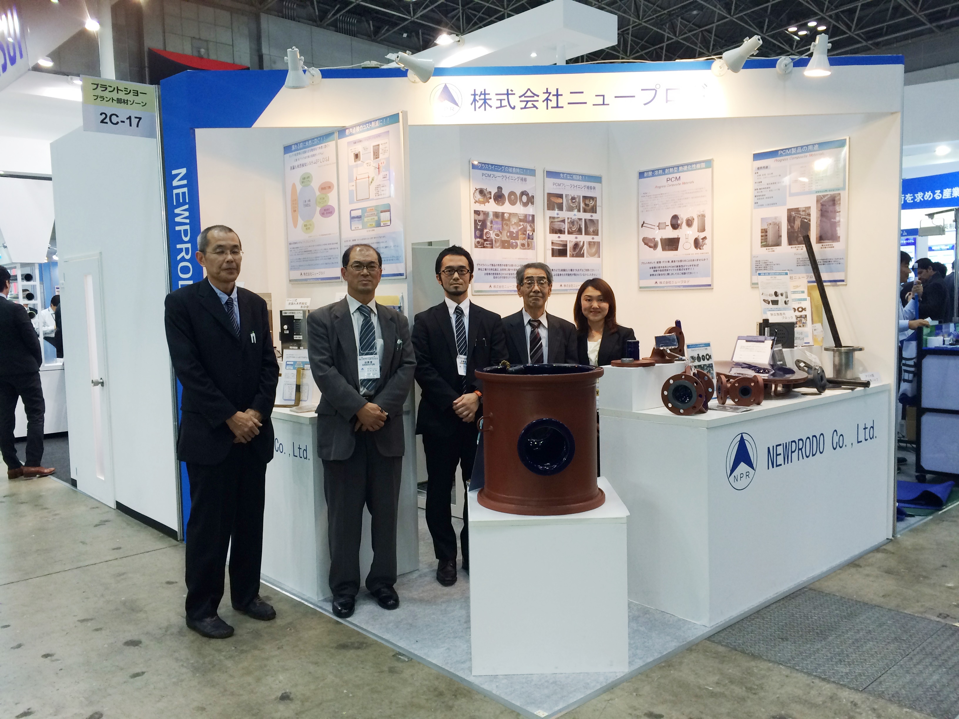 『インターフェックス2009』 2008年に引続き2009年7月初旬、同じく東京ビッグサイトにて開催された『インターフェックス2009』では、一昨年より 業務提携させていただいた新光産業株式会社様のブースにて、PCM関連の展示と製品紹介をさせていただきました。 こちらでは、PCMのカーボンフレークライニングに関してを主に紹介しました。 グラスライニングの損傷部分への補修や熱交換パイプには特に関心を寄せていただきました。